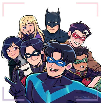 SOME DC RELATED: nightwing (duh), batman, damian wayne, redhood, starfire, batgirl, supergirl, black canary, constantine, zatanna, the flash, wally west, etc (there's more). MARVEL RELATED: spiderman, deadpool, iron man, scarlet witch, all of x-men, etc.